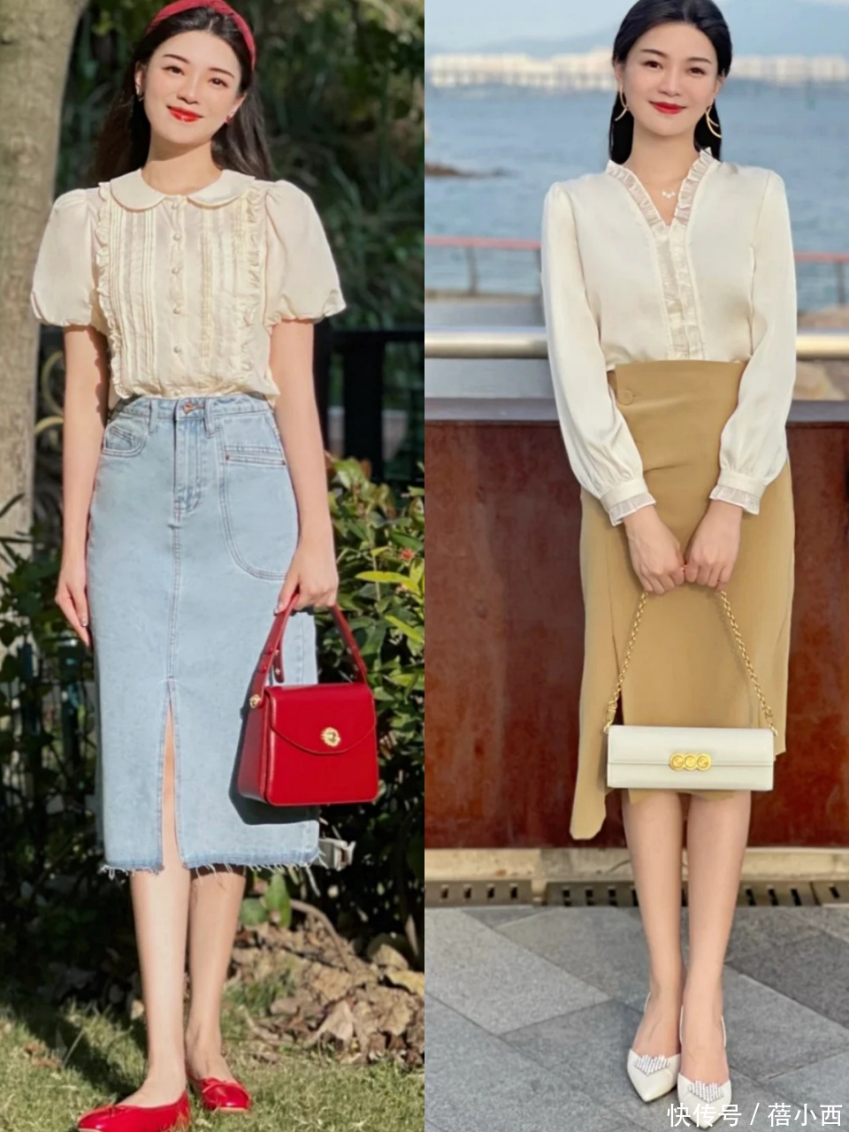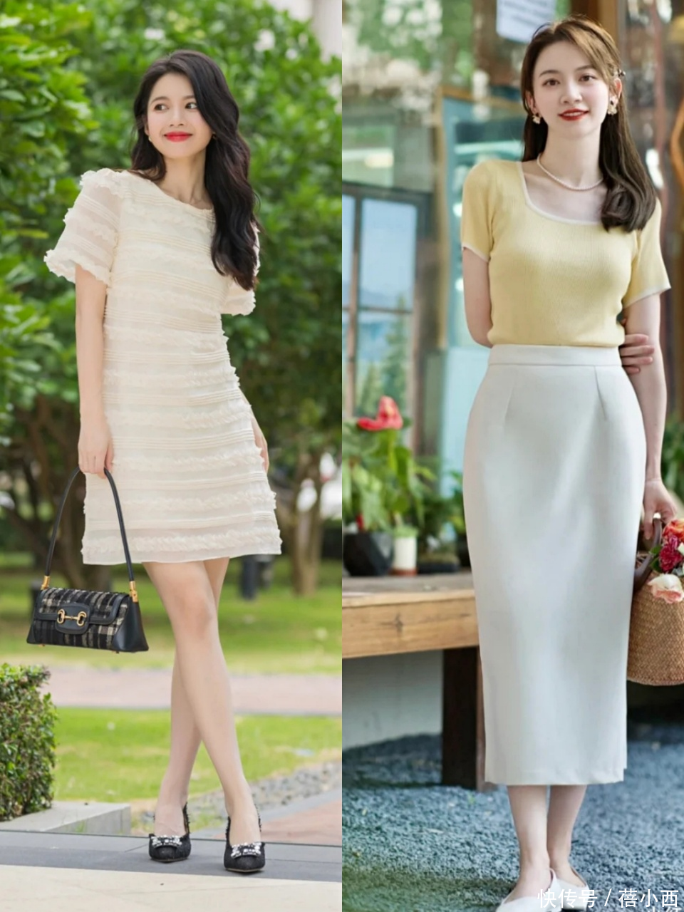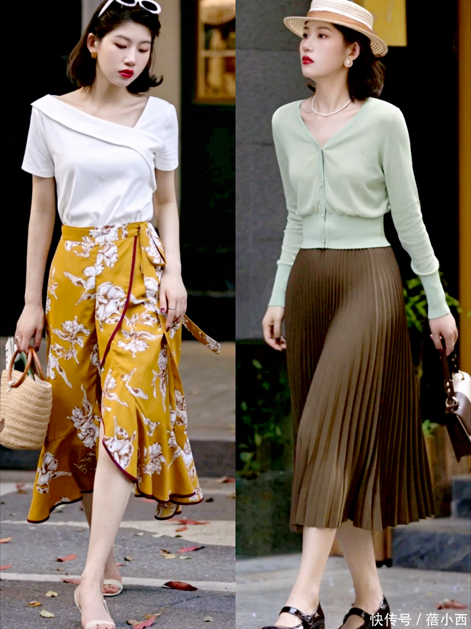 说到了具体搭配示范,夏季穿搭你可得多尝试一下多样衬衫和高腰半身裙的搭配,高腰的裙装更好像突显完竣比例。